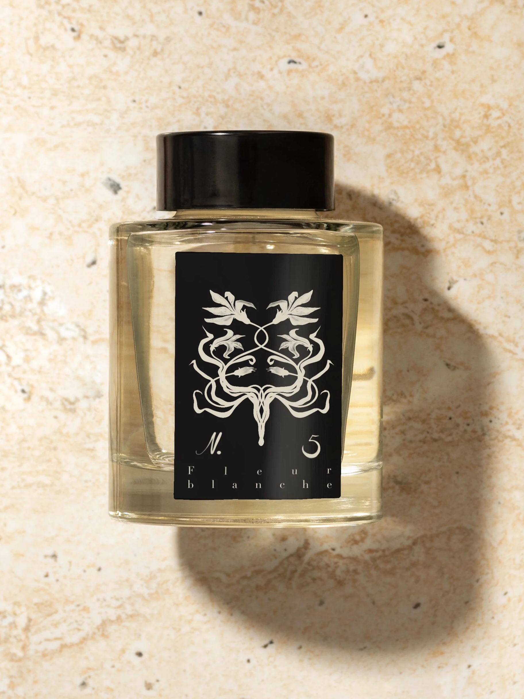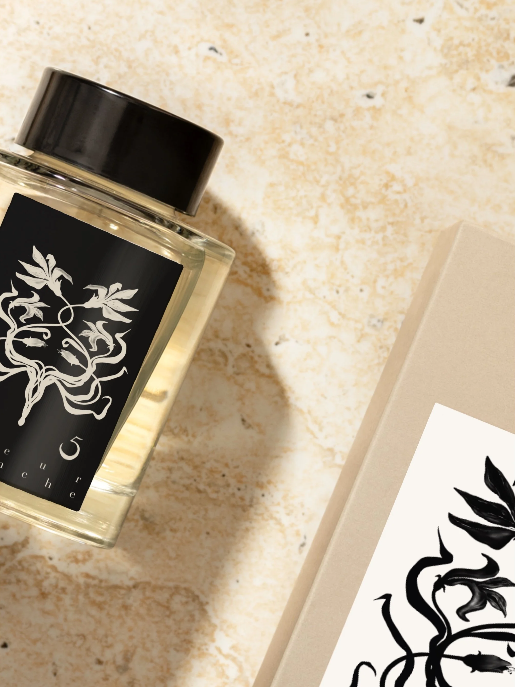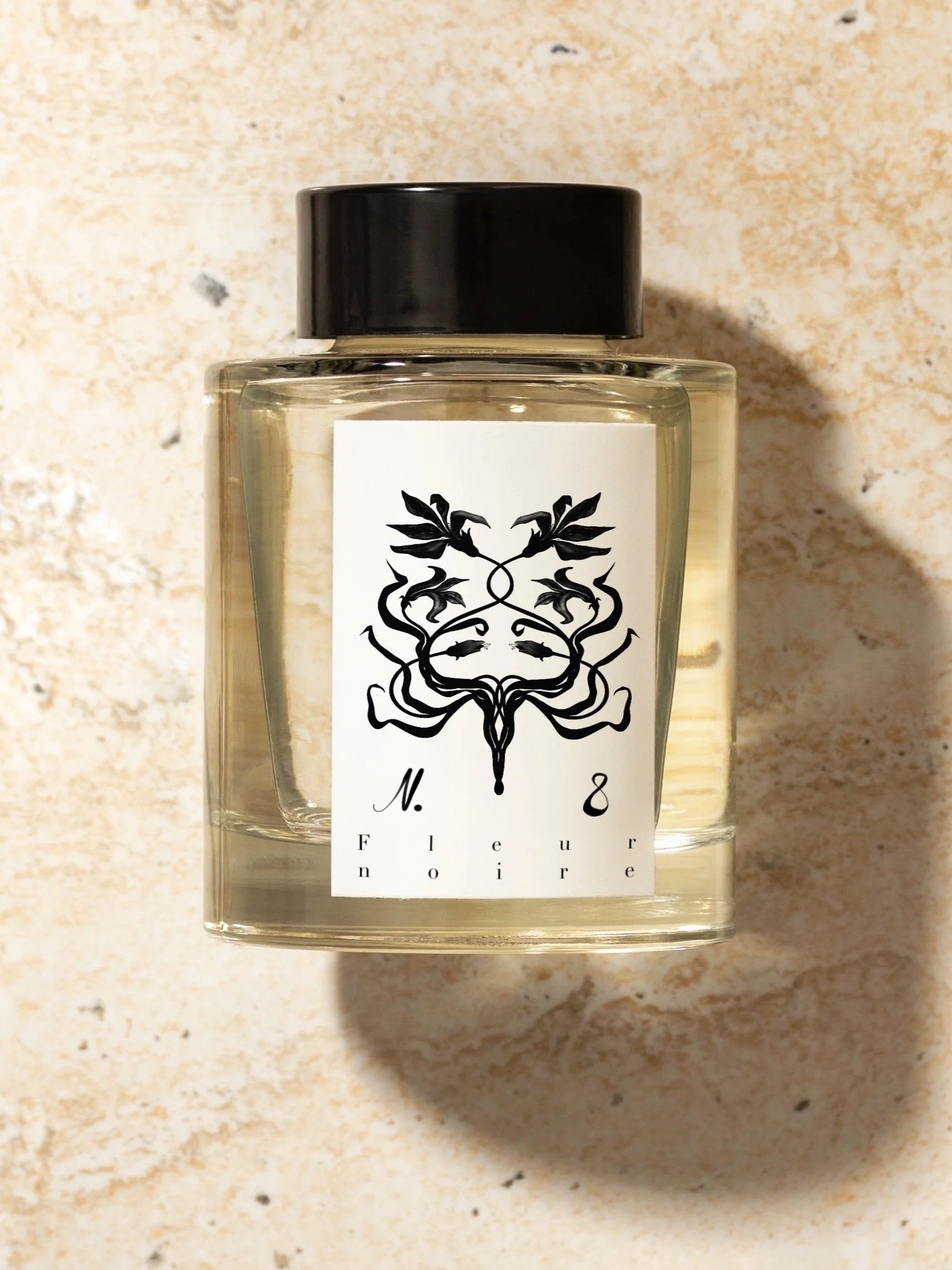 An imaginative perfume bottle combining classic design with contemporary illustration.